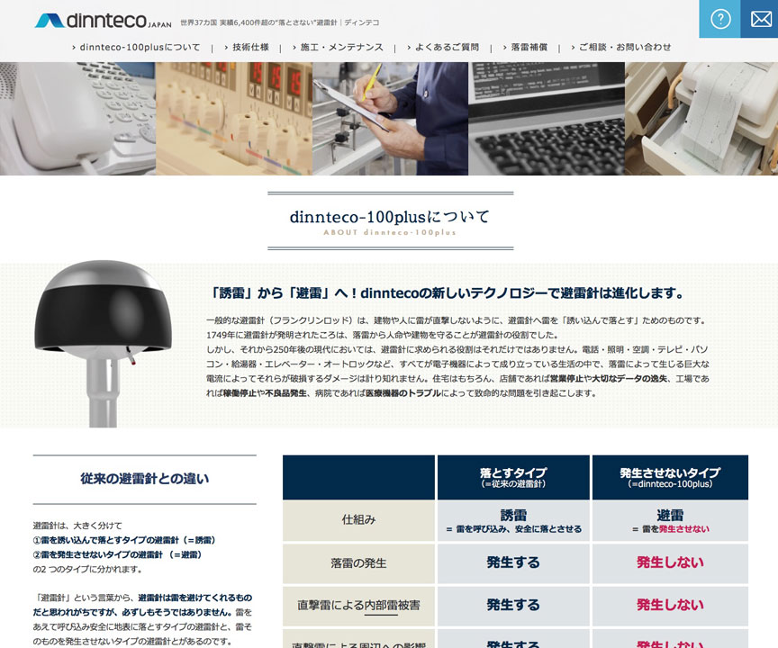 雷対策のリーティングカンパニー dinnteco(ディンテコ)製品の日本国内およびアジア諸国(タイ・ベトナム等)の総代理店である株式会社セイクンとの提携に伴い、ウェブサイトを制作いたしました。