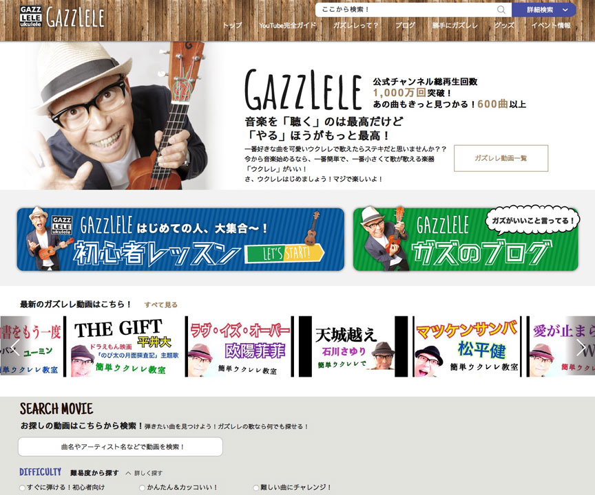 ガズレレは、登録者数が50,000以上、動画ひとつあたりの再生回数が数万〜50万回を超え、さらには楽譜や関連書籍がベストセラーとなっている、ウクレレ界の人気YouTuberです。